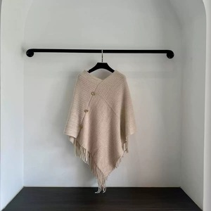 【米色】带扣针织披肩