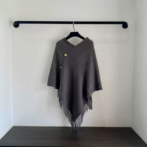 【灰色】带扣针织披肩