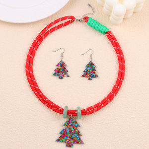 2025圣诞节创意套装姜饼人亚克力耳环红色条纹项链时尚项链饰品女