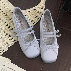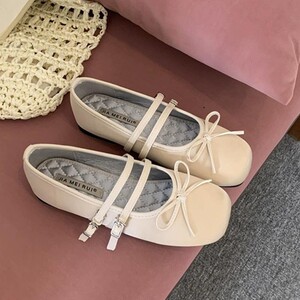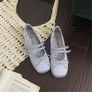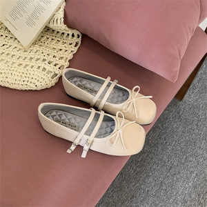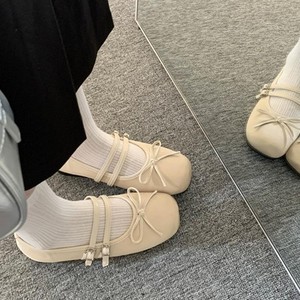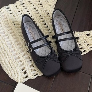 JIAMEIRUI 法式缎面方头蝴蝶结一字带玛丽珍鞋甜美平底芭蕾舞鞋女