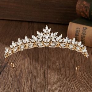 韩式合金皇冠新娘头饰叶子马眼王冠走秀礼服配饰