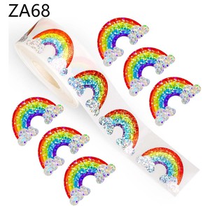 批发500贴/卷卷装彩虹镭射标签贴纸橱窗玻璃装饰防水不干胶贴纸