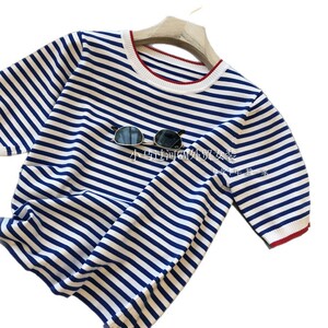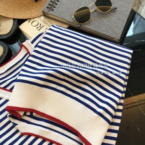 这款Y定要入!清爽蓝白条纹宽松圆领/V领海魂衫针织衫T恤女春夏薄