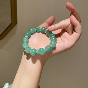 非洲翠珠串手链女 12mm高冰飘花独龙玉珠珠手串国风纯银隔珠国风