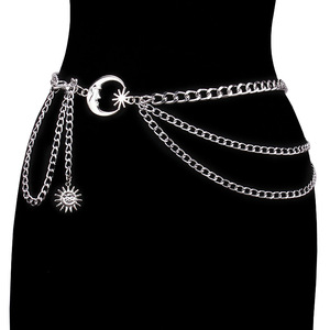 欧美时尚饰品月亮多层金属链条腰链腰带 嘻哈朋克太阳月牙身体链
