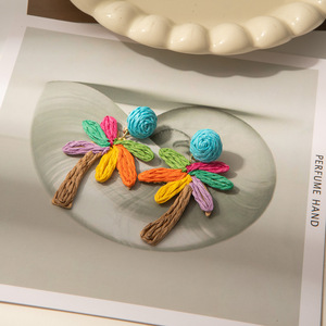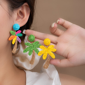Handmade Lafite Grass Seaside Coconut Tree Earring
