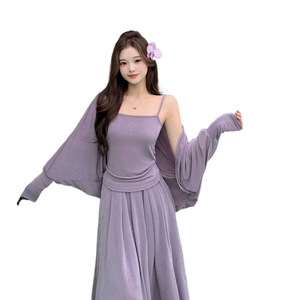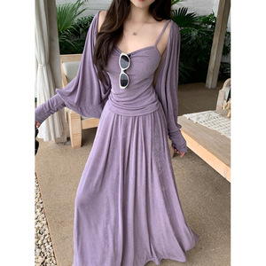 2025早秋新款胖mm大码女温柔吊带蝙蝠袖外套半身裙套装