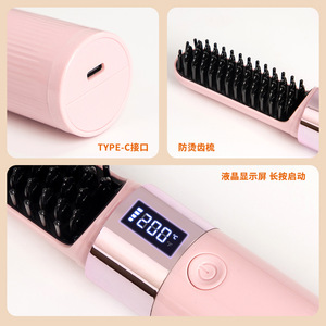 跨境家用加热直发梳充电无线直发器负离子不伤发懒人宿舍用卷发棒