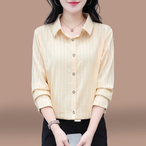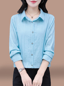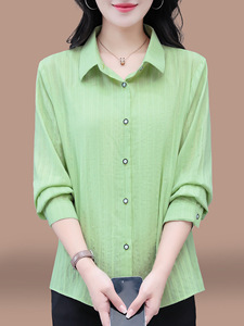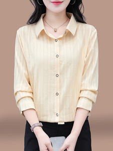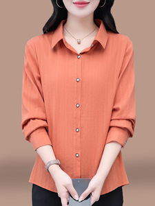 女士早秋纯棉长袖衬衫2025春秋新款宽松大码中年妈妈全棉休闲上衣