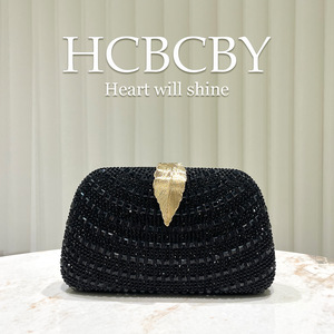 黑色闪光烫钻水钻复古叶子搭扣晚宴包女士时尚气质手拿包小方包