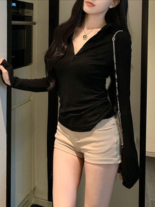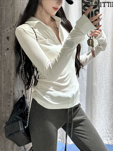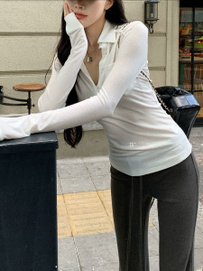 天丝羊毛polo领薄款修身针织衫春秋新款百搭显瘦长袖T恤女