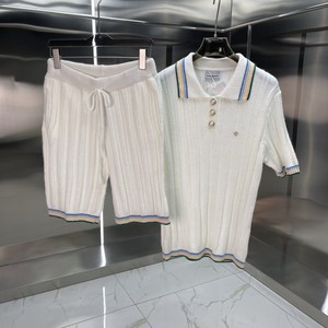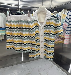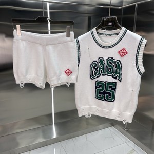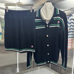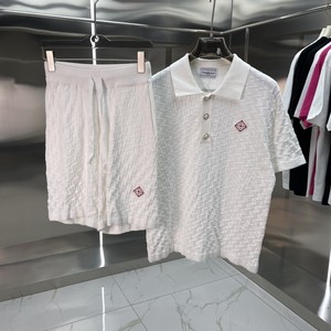 外贸casa卡萨布兰卡针织衫毛衣短袖提花开衫polo衫情侣短裤套装