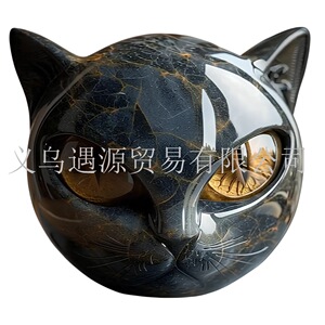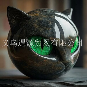 新品Luxury Black Cat Stone Sculpture 奢华黑猫装饰,家居装饰