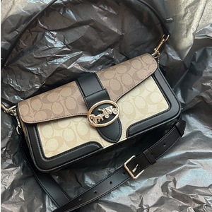 25新款georgie铆钉酒神包老花拼皮单肩斜挎包双肩带翻盖小方包