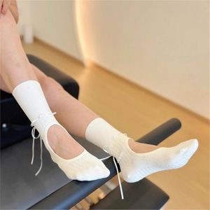 瑜伽袜子露背运动防滑袜中筒袜子女个性抽绳丝带黑白地板袜夏季