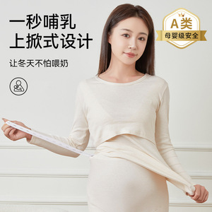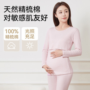 纯棉孕妇秋衣秋裤睡衣女春秋冬季产后产妇哺乳怀孕期喂奶衣月子服