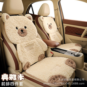 2025新款卡通立体小熊汽车专用坐垫秋冬毛绒座椅靠背垫保暖可爱垫