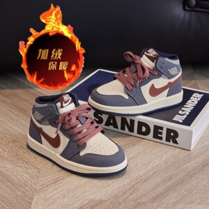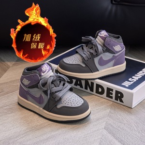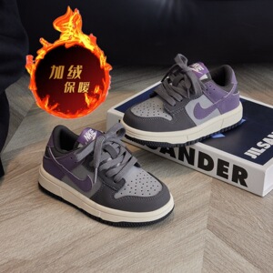 2025秋冬新款加绒儿童鞋男童软底运动休闲鞋韩版女童中大童AJ板鞋