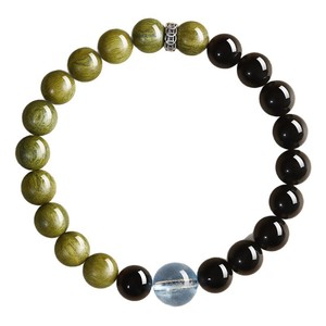 8mm绿檀木黑曜石海蓝宝单圈手串