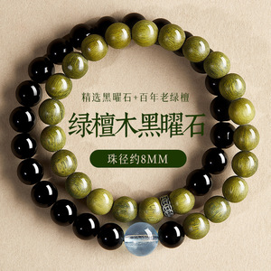 8mm绿檀木黑曜石海蓝宝双圈手串