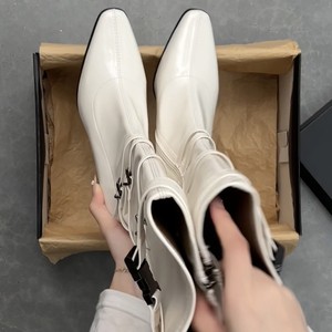 女王范白色复古尖头粗高跟西部牛仔靴女2025新款夏季显瘦骑士靴