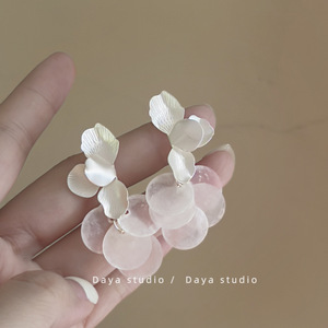 超仙法式复古金属花朵天然贝壳流苏耳环轻奢高级感小众气质耳钉潮