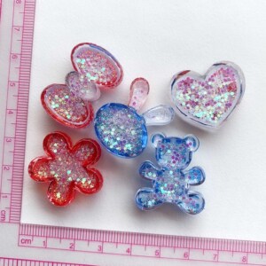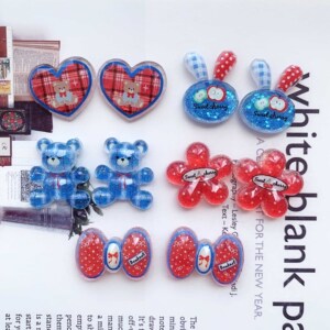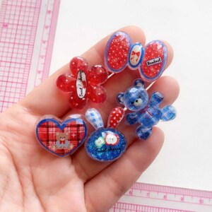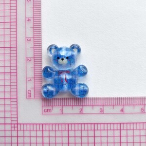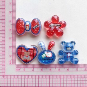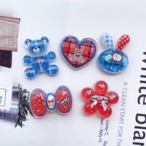 红蓝切面格子小熊爱心树脂配件diy手机壳饰品配件发夹材料