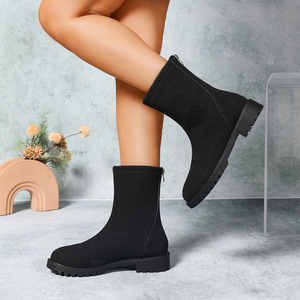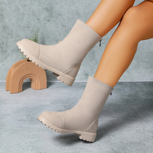 2025外贸新款欧美风时尚简约流行百搭圆头纯色时装靴大码女靴子