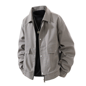 高级感夹克男士工装加肥大码外套休闲春秋季日系复古翻领男装上衣