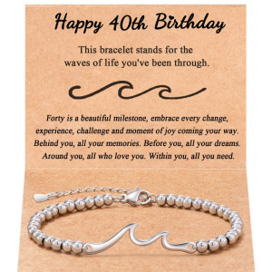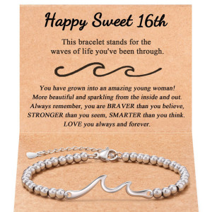 海浪手链不锈钢浪花银珠串珠可调节链条生日礼物银珠海浪生日手链