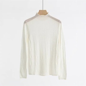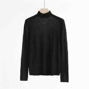 精纺羊毛半高圆领针织衫长袖纯色乱针修身显瘦打底衫显瘦秋冬打底