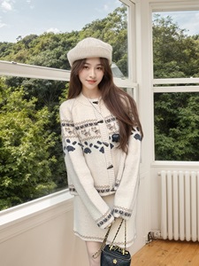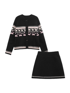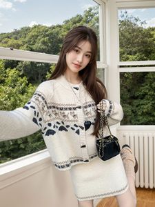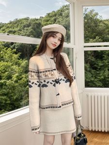 奢缇家秋季2025新款女装毛衣女费尔岛套装毛衣配裙子针织两件套