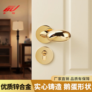 鹅蛋形分体锁美式金色室内门锁家用卧室房门把手简约磁吸静音锁具