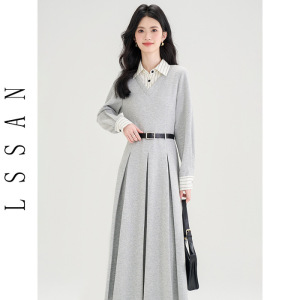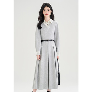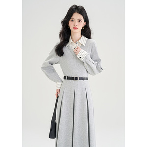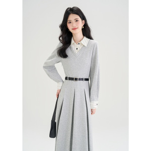 灰色假两件连衣裙