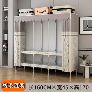 简易衣柜出租房卧室家用组装钢管钢架加固加粗加厚多挂衣布衣柜衣