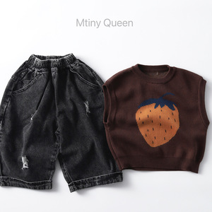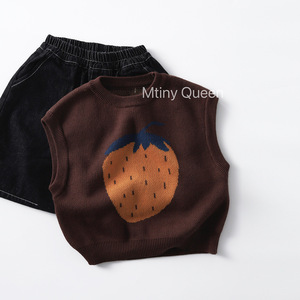 日系慵懒~韩版儿童插画全棉毛衣圆领马甲背心洋气男女宝针织外穿