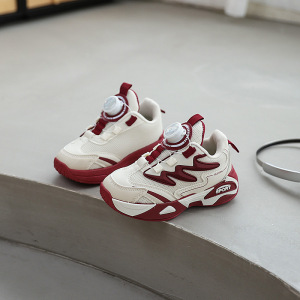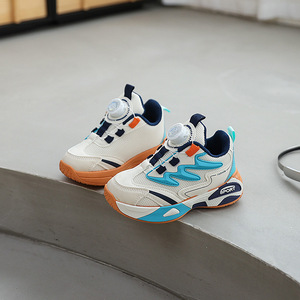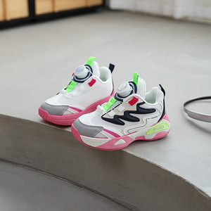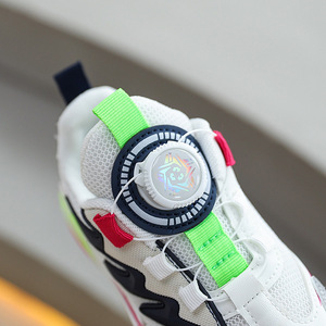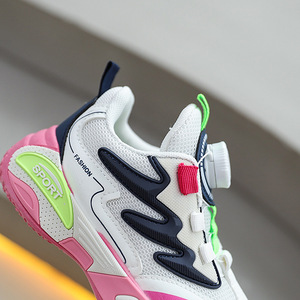 儿童运动鞋2025秋季新款旋转纽扣校园运动鞋透气网面白色跑步鞋