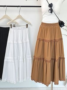 韩系复古高腰显瘦中长款a字裙小众设计蕾丝花边半身裙2025早秋