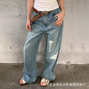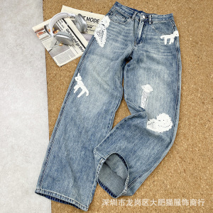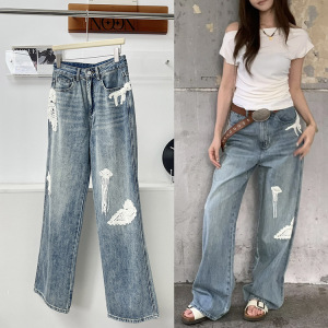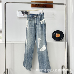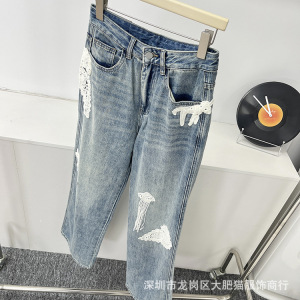 早秋新款 25复古立体绣花直筒宽松休闲牛仔裤