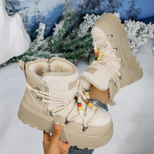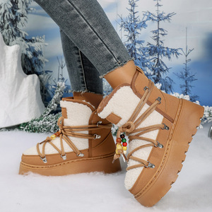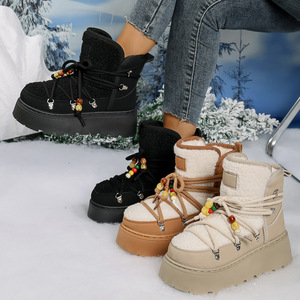 跨境大码加绒厚底雪地靴女2025秋冬新款时尚保暖一脚蹬面包靴女鞋
