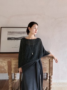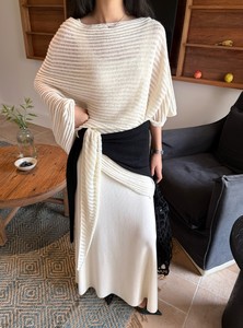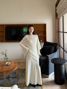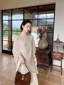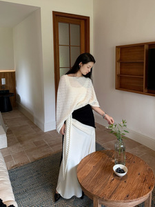 DIGM | 2025秋季极简慵懒风松弛感条纹镂空羊毛针织披肩女A8M016