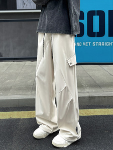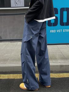 美式vibe工装伞兵裤男秋季潮牌复古阔腿长裤高街百搭直筒休闲裤子