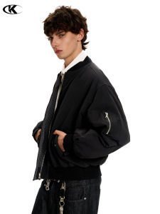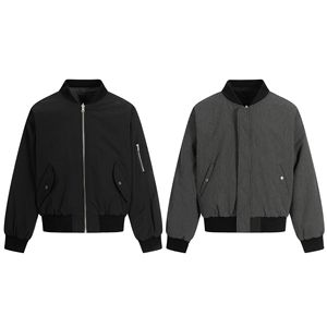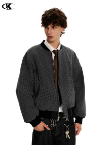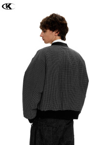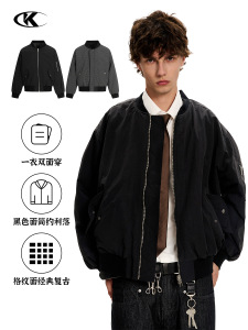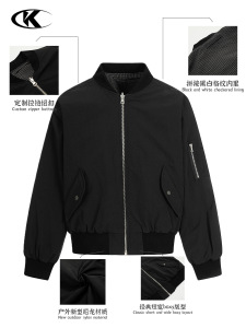 11KN美式黑色双面飞行夹克男女短宽boxy简约格子宽松复古休闲外套