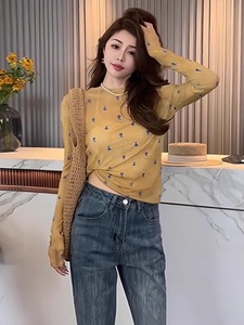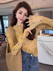 复古港风女孩印花长袖防晒罩衫夏薄款网纱T恤超好看修身百搭上衣