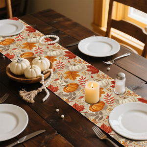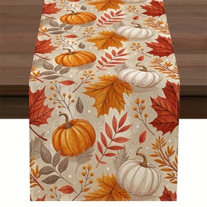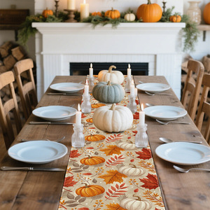 1个装灰色渲染南瓜秋叶圆点秋季桌旗适用于厨房餐桌派对