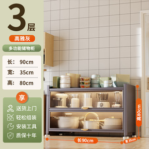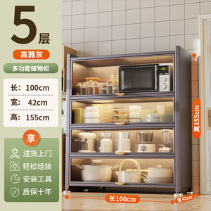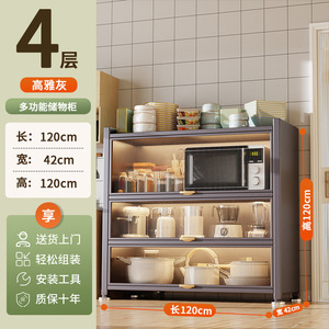 厨房微波炉防尘置物柜家用落地多层置物架碗筷柜餐边柜橱柜储物柜