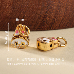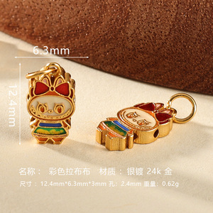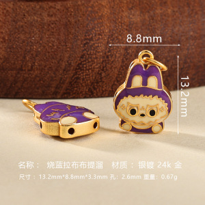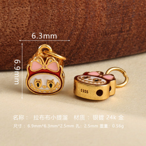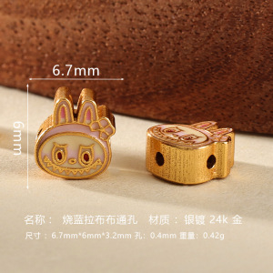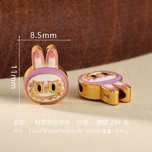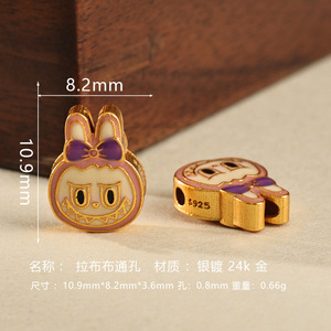 s925银镀金烧蓝拉布布隔珠diy手串项链吊坠配饰手工编绳饰品配件