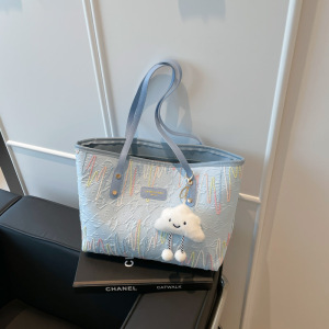 包包女2025新款时尚洋气女士单肩包休闲通勤大容量条纹刺绣托特包
