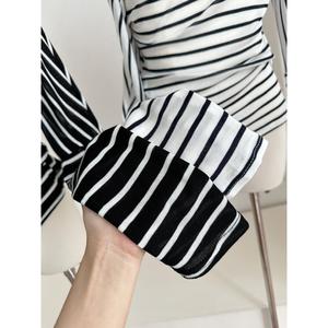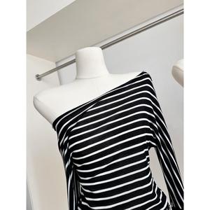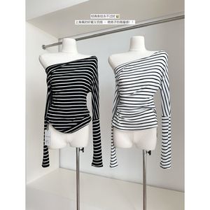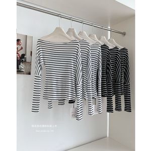 2025潮流夏季新款韩版条纹一字领斜肩长袖T恤小衫女上衣
