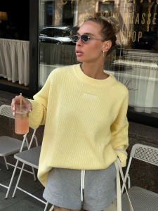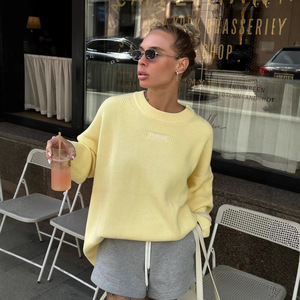糖果色长袖高级感圆领套头毛织上衣女2025秋冬新款Oversize毛衣女